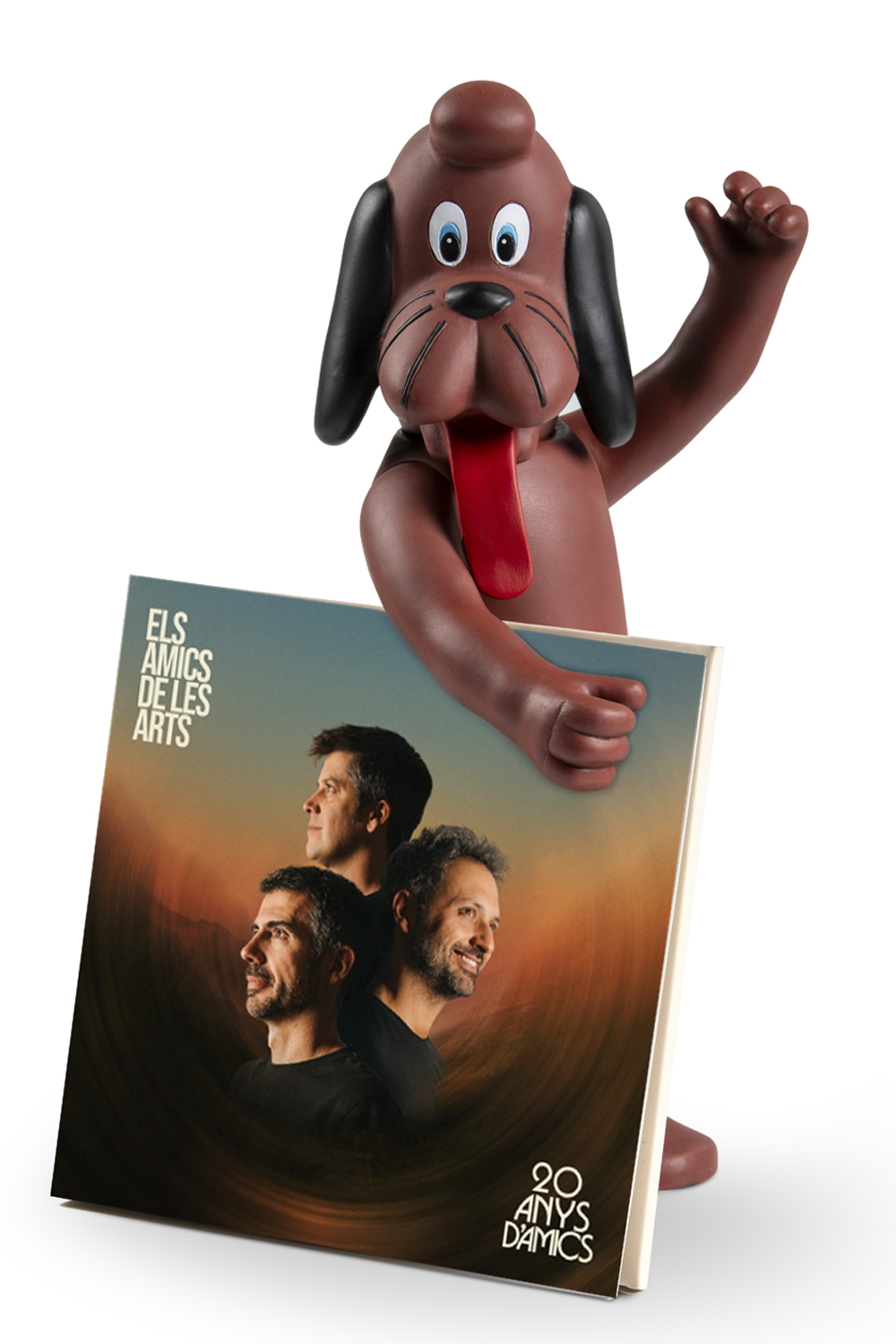 Descobreix la figura de goma del Gos d’Els Amics de les Arts, una figura que neix per celebrar els 20 anys de carrera artística del grup musical. Una joguina de Festiari de tacte agradable i resistent als cops.